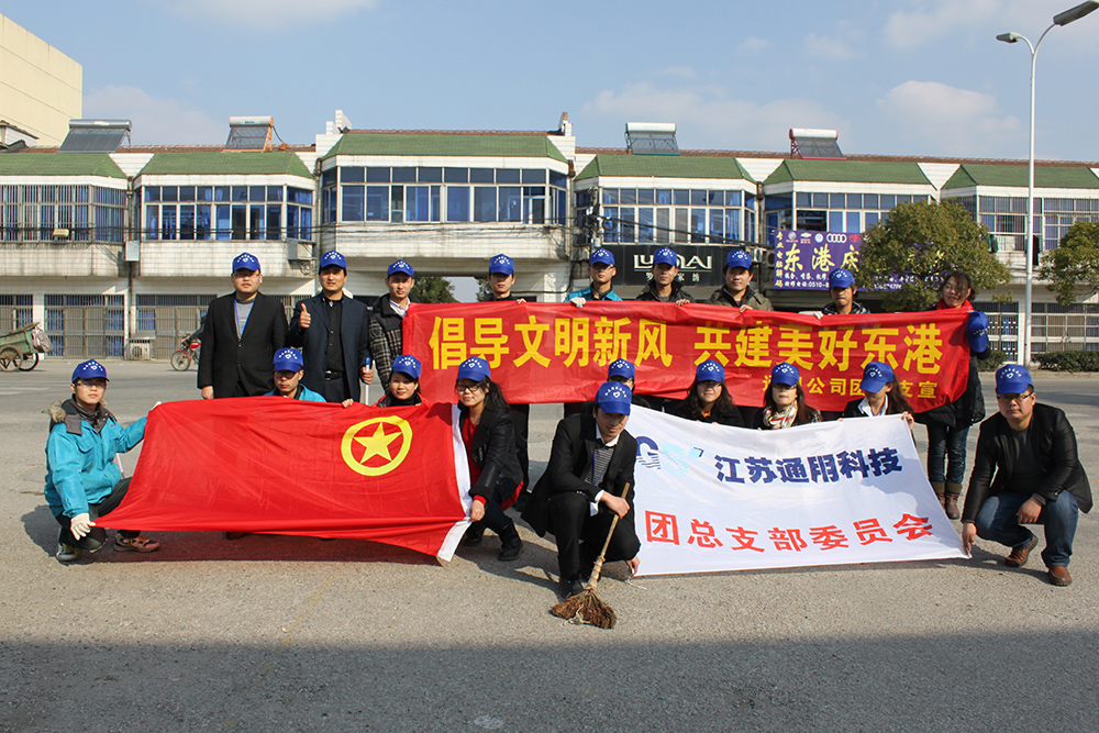 2012年12月11日中午,通用股份團(tuán)總支組織二十多名青年‘環(huán)保衛(wèi)士’利用午休時(shí)間開(kāi)展“倡導(dǎo)文明建設(shè),共建美麗東港”活動(dòng)。‘環(huán)保衛(wèi)士們’從