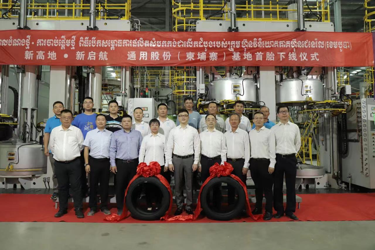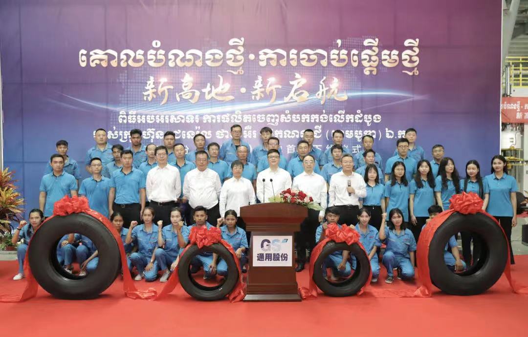 “5、4、3、2、1,出鍋!.......”3月18日,在通用輪胎科技柬埔寨公司總經(jīng)理陶國(guó)忠的倒數(shù)聲中,柬埔寨工廠首胎成功下線,標(biāo)志著通用股份海外“雙基地”的正式建成、全面啟航。在首胎下線儀式上,西哈努克省省長(zhǎng)郭宗仁、喬治·布什美中關(guān)系基金會(huì)創(chuàng)始人兼主席尼爾·布什,中國(guó)民營(yíng)經(jīng)濟(jì)國(guó)際合作商會(huì)會(huì)長(zhǎng)、紅豆集團(tuán)董事局主席周海江,通用股份董事長(zhǎng)顧萃等相關(guān)領(lǐng)導(dǎo)和全體員工共同見(jiàn)證了這一歷史時(shí)刻。
